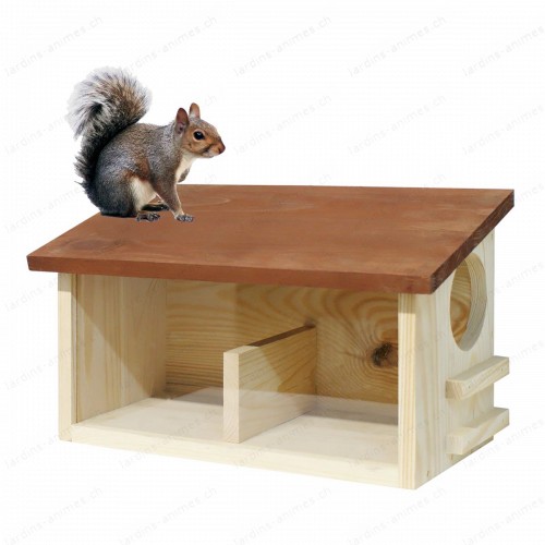 Füllen Sie die Kammer mit dem speziellen Futter fûr Eichhörnchen an und beobachten Sie das Spektakel: die Eichhörnchen sind sehr agil und heben das Oberteil an, um sich zu bedienen.